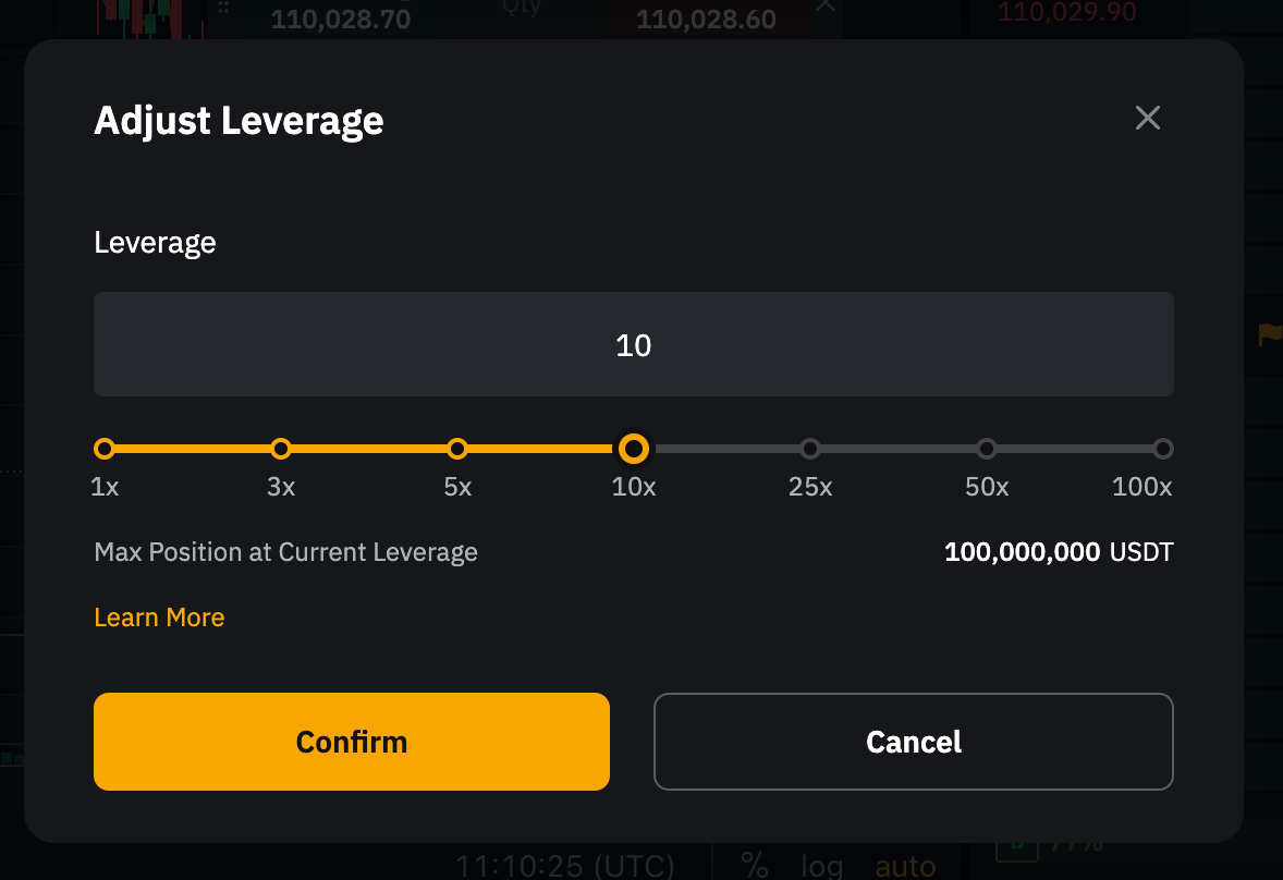Namun, jika Bob mencoba untuk membuat pesanan long lagi sebesar 1 juta pada kontrak BTCUSDT, sistem akan memblokir pesanan tersebut. Hal ini dikarenakan nilai total 3 juta pada posisi dan pesanan aktif melebihi 90x nilai posisi maksimum yang diperbolehkan, yaitu 2,6 juta. Jika Bob berniat membuka posisi melebihi 2,6 juta, dia harus mengurangi leverage secara manual ke maksimum 80x. Penyesuaian ini akan meningkatkan nilai posisi maksimum yang diperbolehkan menjadi 3,2 juta.