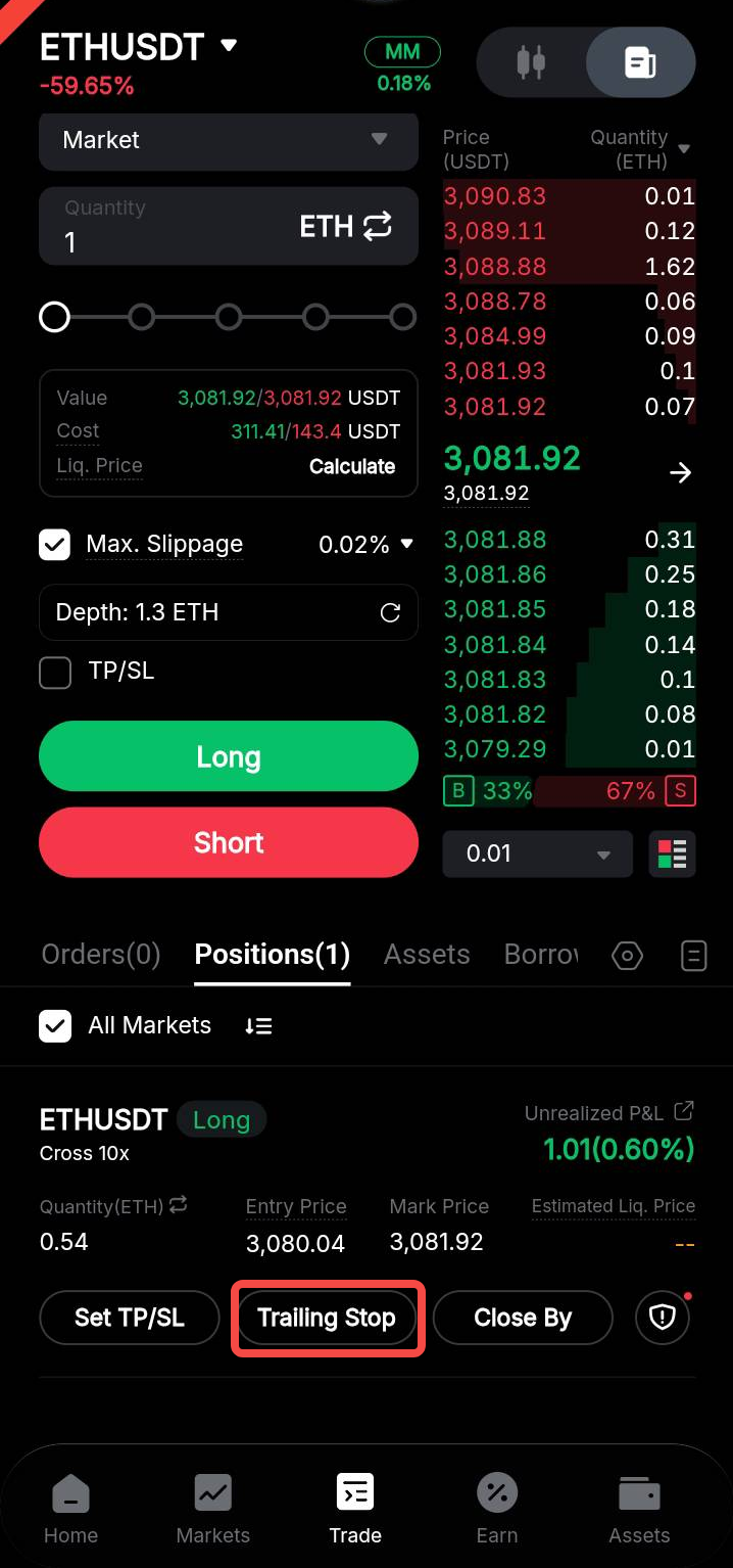 Bagi pengguna Aplikasi Bybit, harap dicatat bahwa fitur Trailing Stop hanya tersedia pada Aplikasi versi 4.37.0 ke atas.
