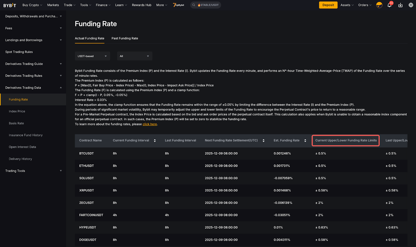Selama periode volatilitas pasar yang signifikan, Bybit dapat menyesuaikan secara sementara batas atas dan bawah Tingkat Pendanaan untuk mendorong harga Kontrak Perpetual agar kembali ke kisaran yang wajar.