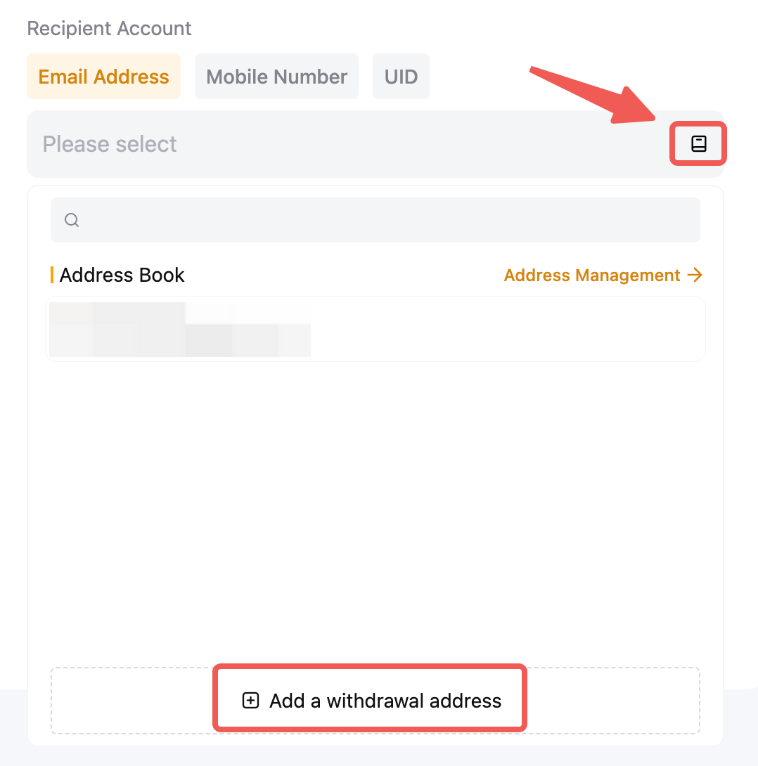 — Anda dapat menambahkan alamat email, UID, atau nomor ponsel ke buku alamat dompet Anda dengan mengeklik pada Tambah. Untuk detail selengkapnya, silakan merujuk ke Cara Menambahkan Alamat Dompet Penarikan.