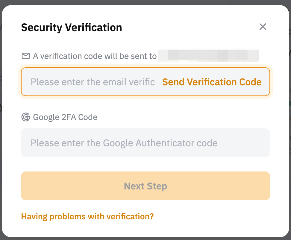 Harap dicatat bahwa dua langkah verifikasi berikut — verifikasi email dan otentikasi Google — diperlukan jika alamat email dan/atau nomor ponsel penerima Anda belum diverifikasi. Untuk mempelajari lebih lanjut tentang cara mengelola keamanan penarikan Anda, silakan merujuk ke halaman ini.