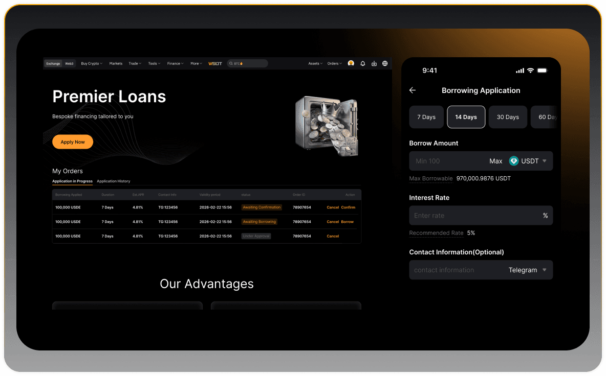 Pilih "Pinjam" di aplikasi Anda. Verifikasi detail, berikan jaminan Anda, lalu klik "Konfirmasi". Dana Anda akan segera dicairkan.
