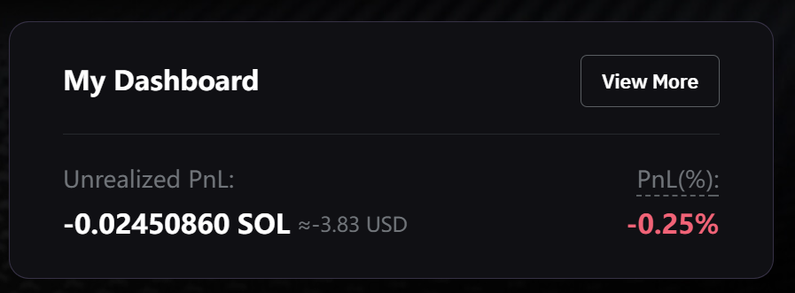 Como alternativa, acesse Meu Painel no canto superior direito da página inicial do Staking de SOL como margem. Aqui, você verá seu P/L não realizado e P/L(%). Clique em Ver mais para obter informações detalhadas sobre a ordem.