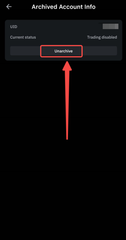 Vá para sua página de ativos MT5 da Bybit. Uma mensagem pop-up informando que sua conta foi arquivada será exibida. Para desarquivar a conta, clique no botão Desarquivar agora.