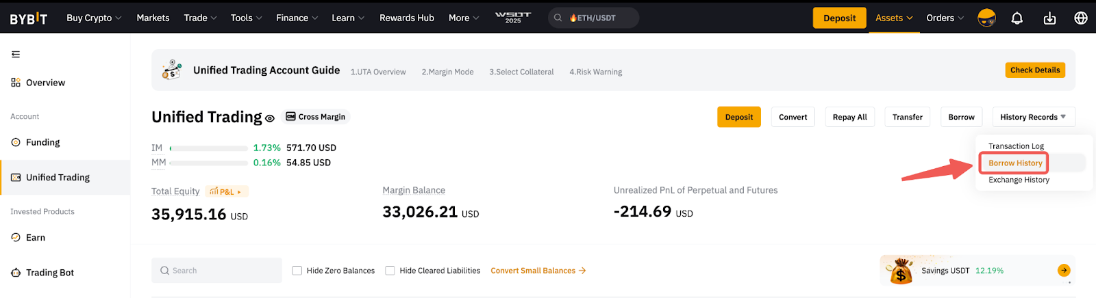 Bybit 在统一交易账户中提供两种借贷方式:手动借款自动借款