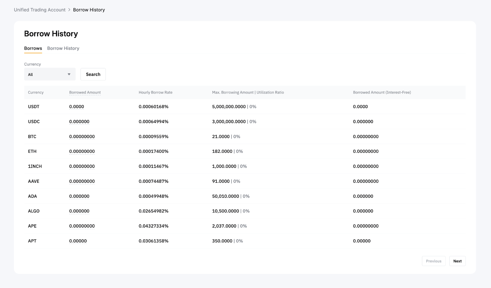 1. 借款限额:每个币种的最高借款额。您的主账户和子账户共享该限额。