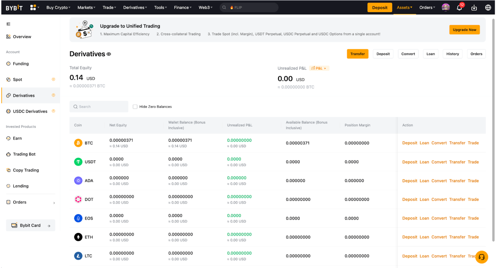您可在主账户或子账户之间划转选定的币种。欲了解详情,请参阅如何在 Bybit 平台划转资产
