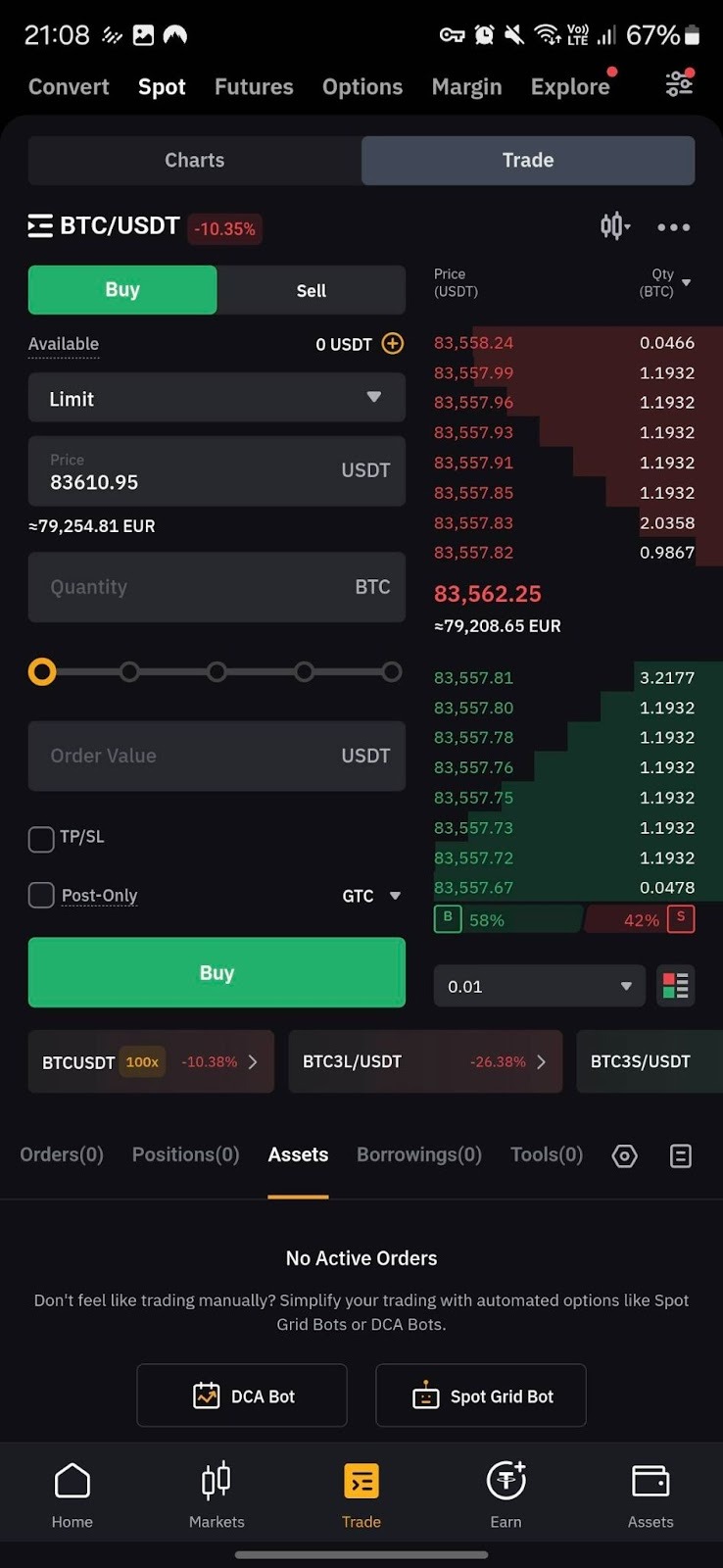 市场买入和卖出订单以订单簿中的最佳可用价格填写。因此,对于交易者来说,填写他们希望用来购买或出售加密货币的资产数量(基础或报价代币)而不是要购买的加密货币数量会更准确。
