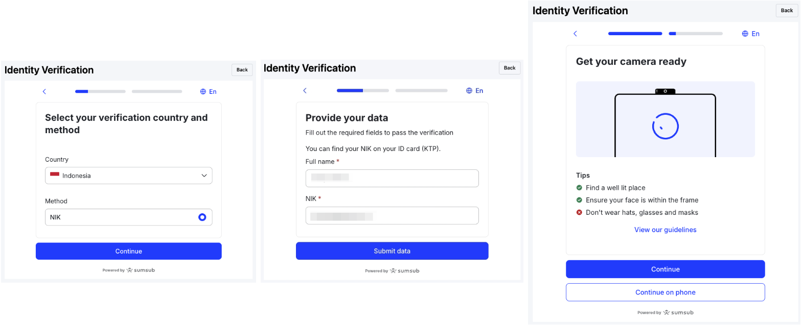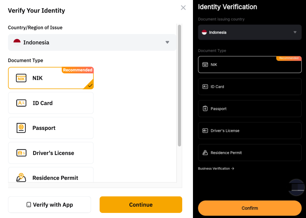 印度尼西亚居民可以使用本地证件类型完成身份认证:Nomor Induk Kependudukan (NIK)