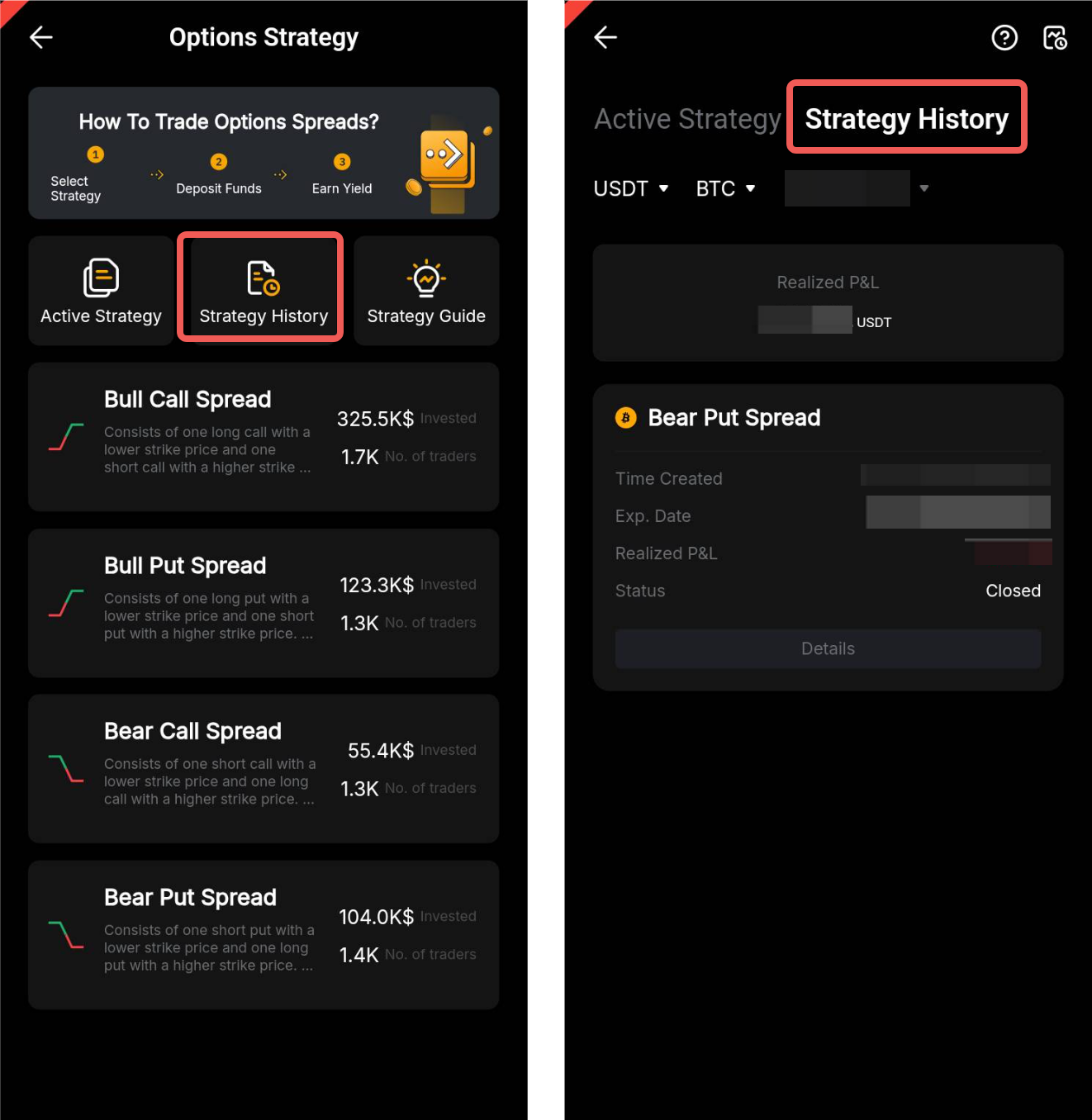 您可以在策略历史下查看历史策略详情,包括所有历史策略的已实现盈亏。如需详细了解您的历史策略,请点击详情。