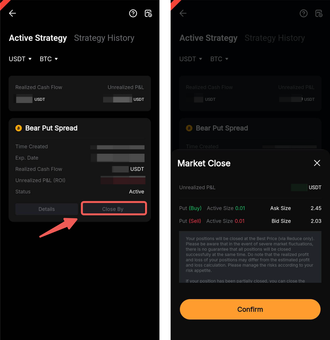您的期权策略将以市价单平仓。请注意,在极端市场条件下,市场流动性不足可能会导致策略平仓失败。