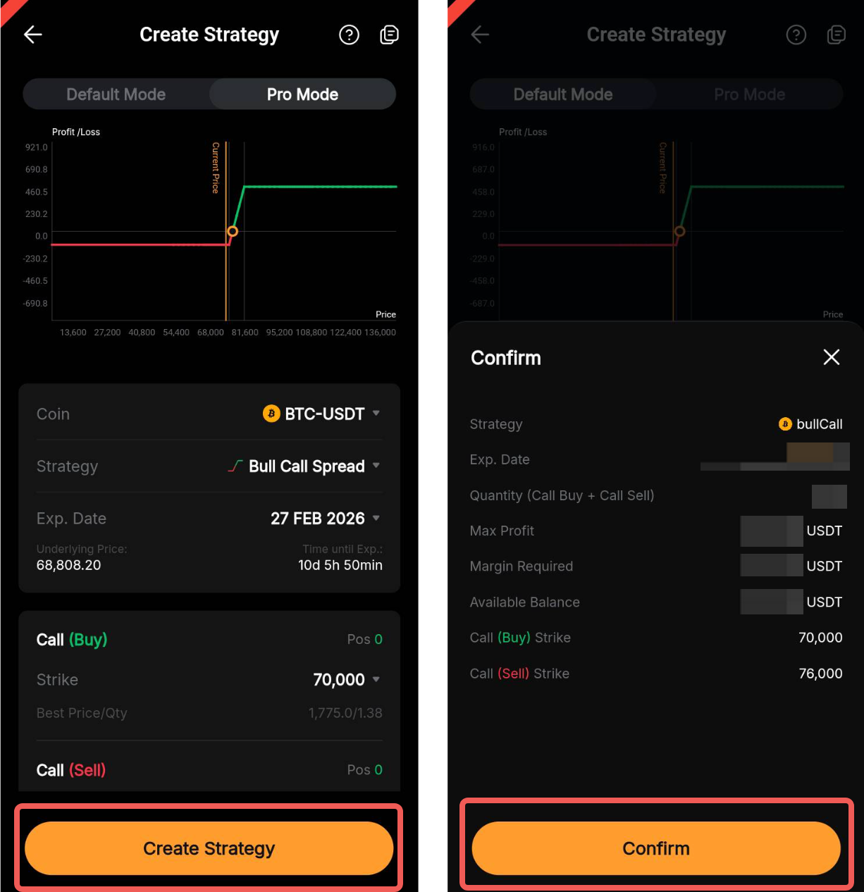 第 4 步:点击创建策略并查看您的所有订单详情,然后再点击确认。 您的期权策略将作为市价单执行。
