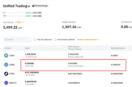 • USDC 权益 = 0