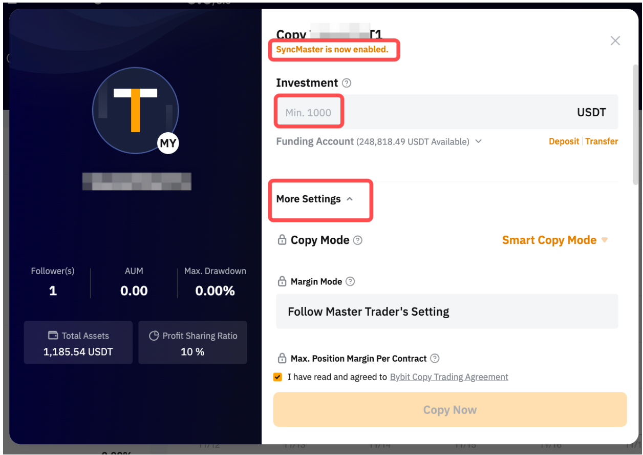 — 如果交易达人启用强制同步或修改交易参数,您的跟单交易设置将自动同步。虽然提高最低投资额不会影响进行中的交易,但您不能将投资额降低至交易达人指定的最低投资额以下。