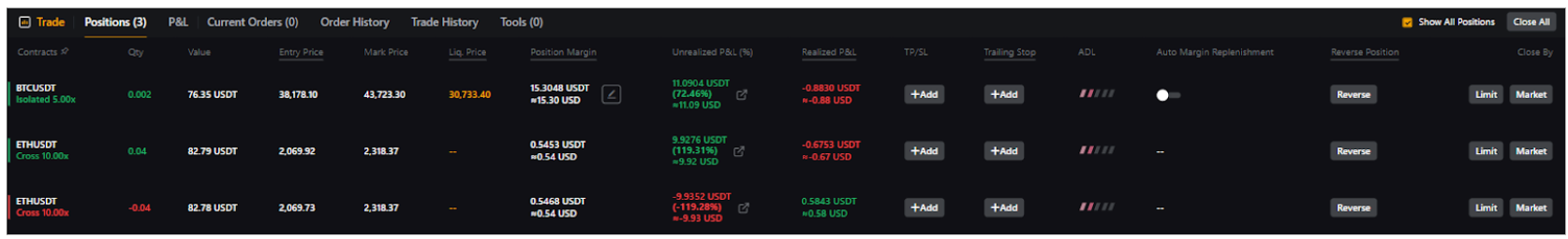 让我们先了解交易页面的「仓位」标签中显示了哪些盈亏资讯。