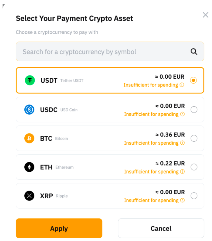 我的資金帳戶支援多種加密貨幣,Bybit Card 交易將使用哪種加密貨幣,順序如何?