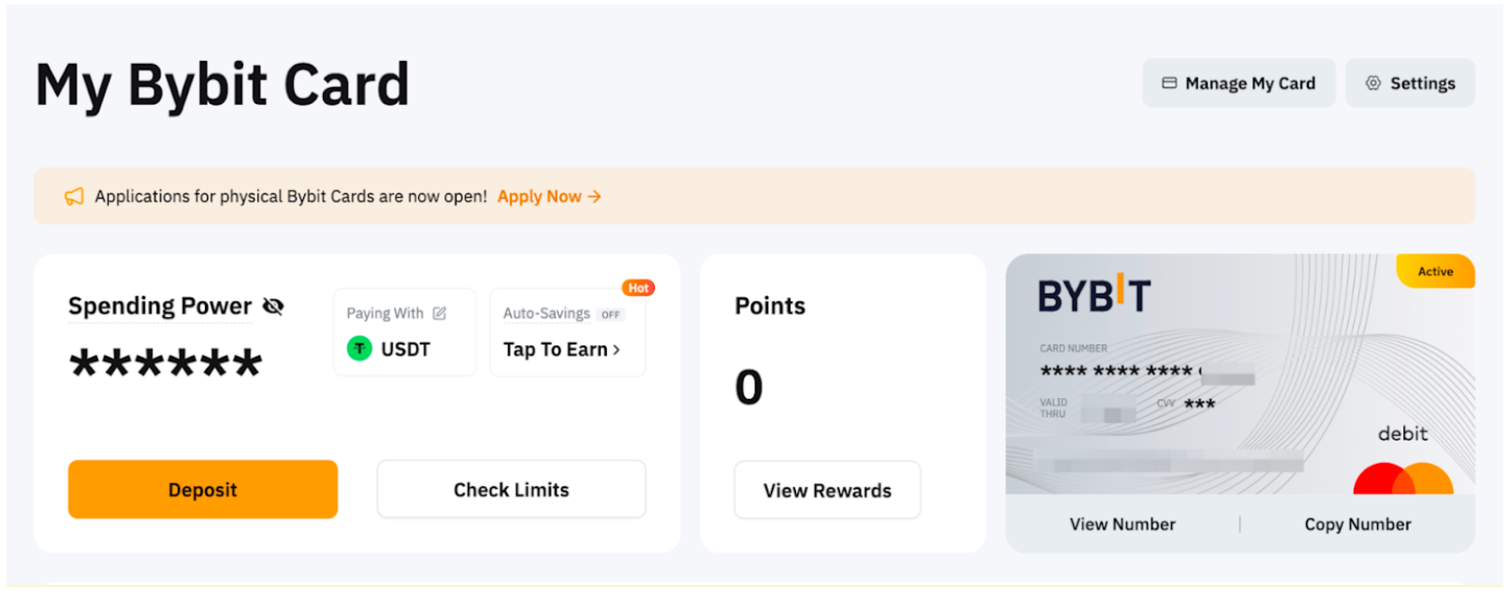Bybit 保留在內部評估風險後拒絕任何申請的最終決定權。欲詳細了解 Bybit Card 申請指南,請參閱本頁