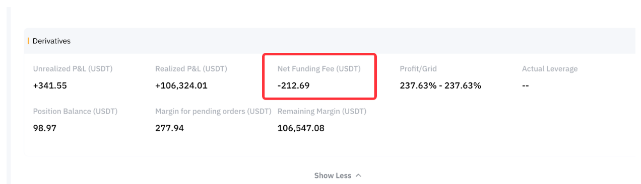 資金費用為負數表示您正在從上一個資金間隔收到(賺取)資金費用。 相反,如果您看到正數,則表示您正在支付資金費用,這會導致您的機器人內的剩餘保證金減少。