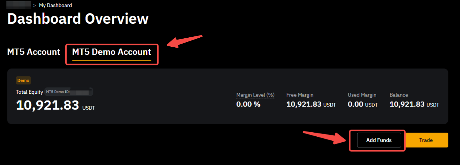 如何新增和移除 TradFi (MT5) 模擬帳戶中的資金?