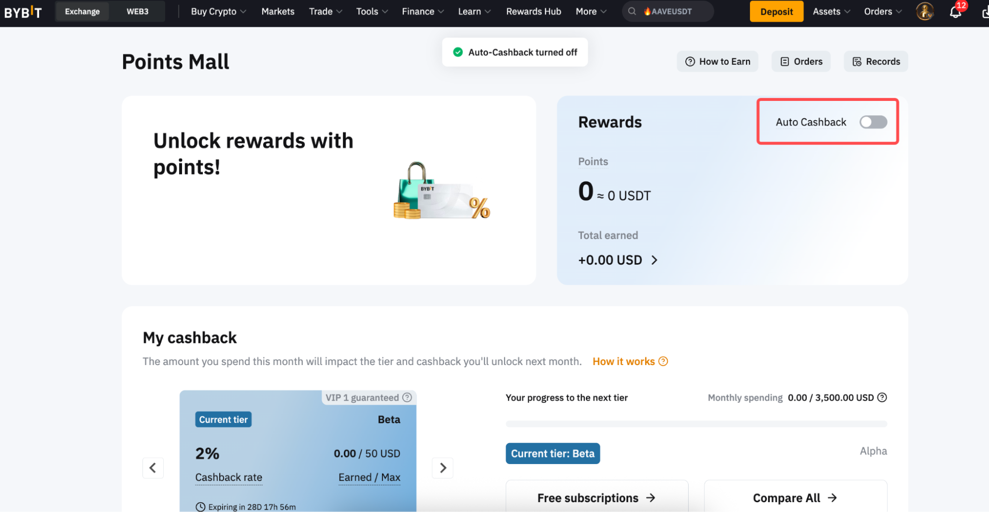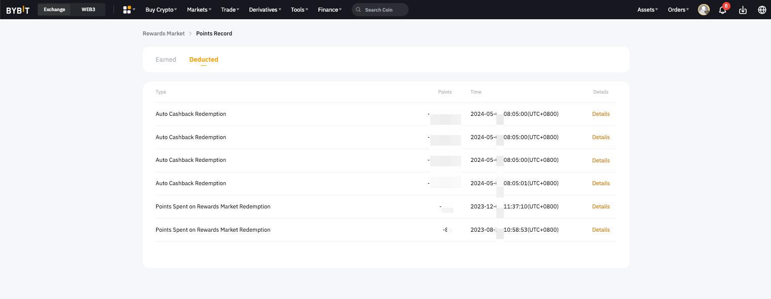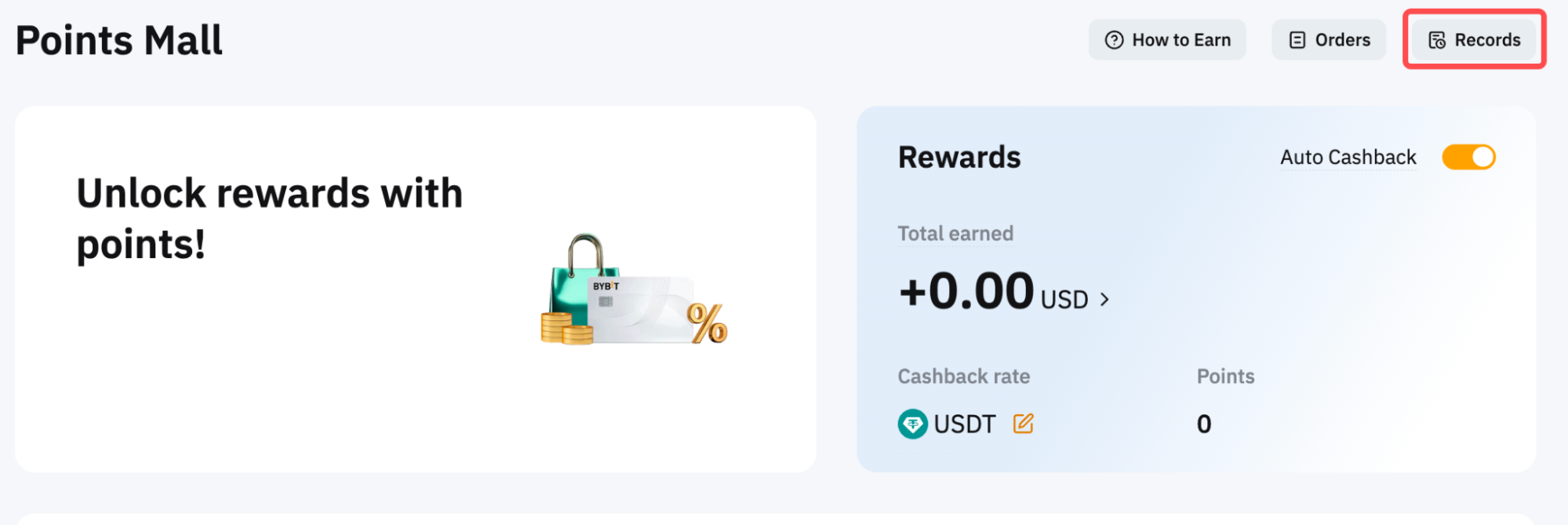 以下是使用獎勵積分激活自動返現的分步指南。 通過 Bybit Pay 查看您過去的兌換記錄