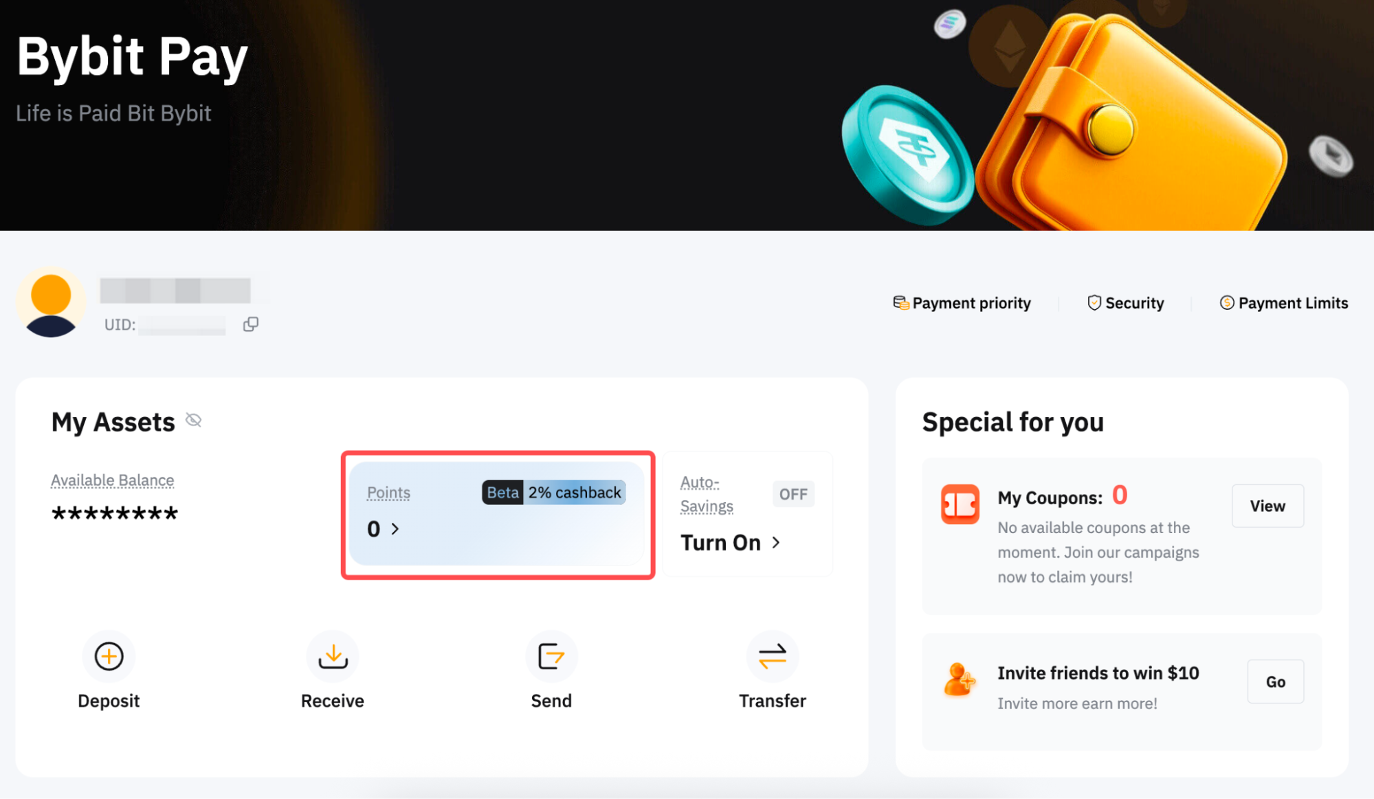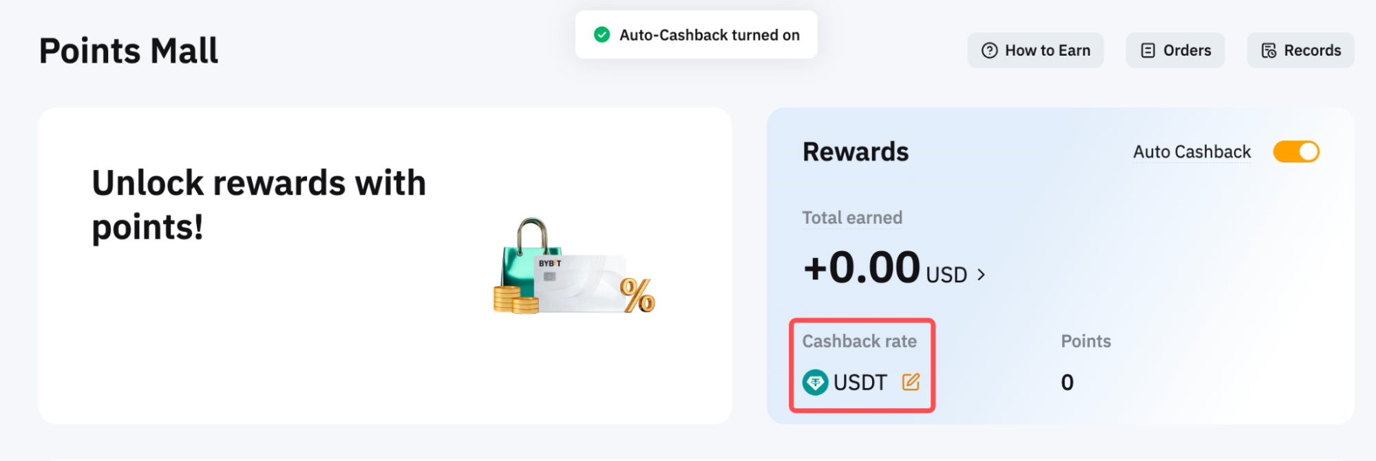 Bybit Pay 自動返現的最低限額爲 50 積分。