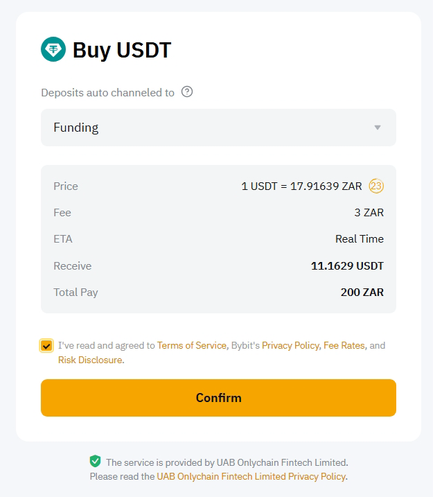 Bybit's Instant EFT service for South African Rand (ZAR) deposits makes investing in cryptocurrency simple, fast, and secure with funds typically arriving within minutes.