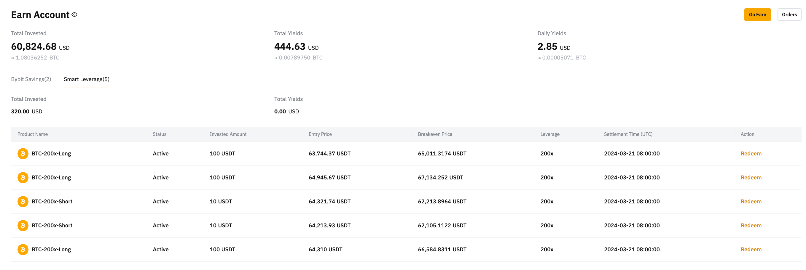 或者,您也可以點擊 Bybit 頁面右上角的資產,進入理財賬戶頁面。您可以在這裡查看當前訂單。