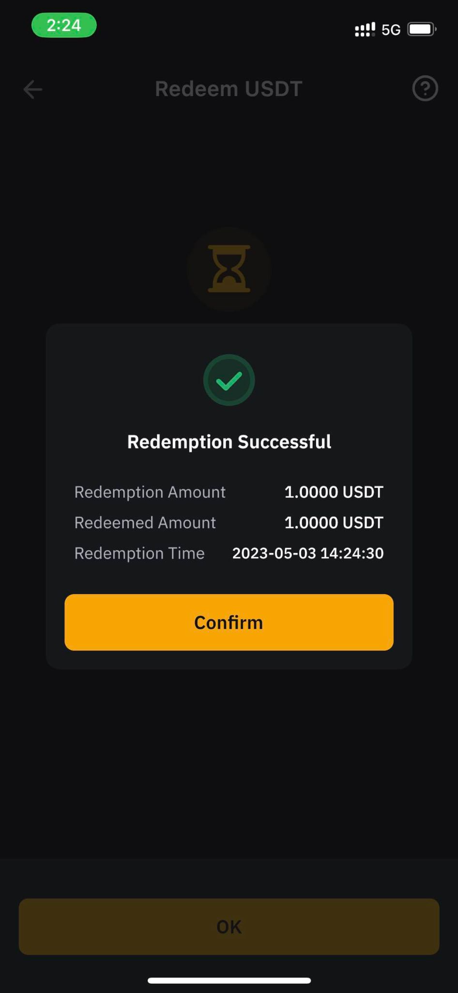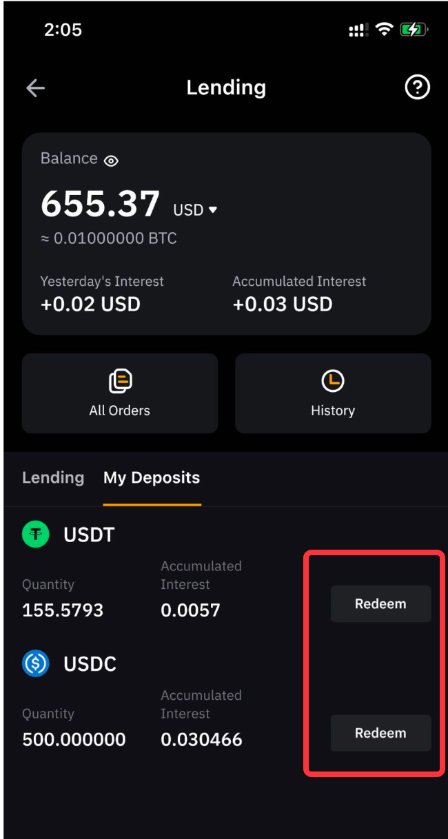 成功贖回後,本金和利息收益將一起發放到您的現貨賬戶或統一交易賬戶(如果賬戶已升級)。