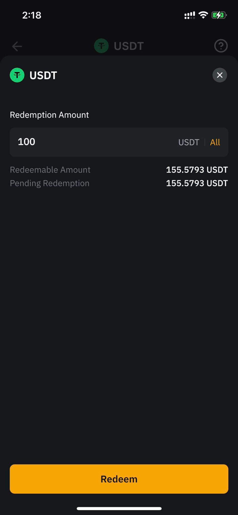 在資金使用率較高或您已達到每位用戶的單日贖回限額時,可能會出現可贖回金額低於存入金額的情況。要查看各個幣種的單日贖回限額,請參閱此處的文章。