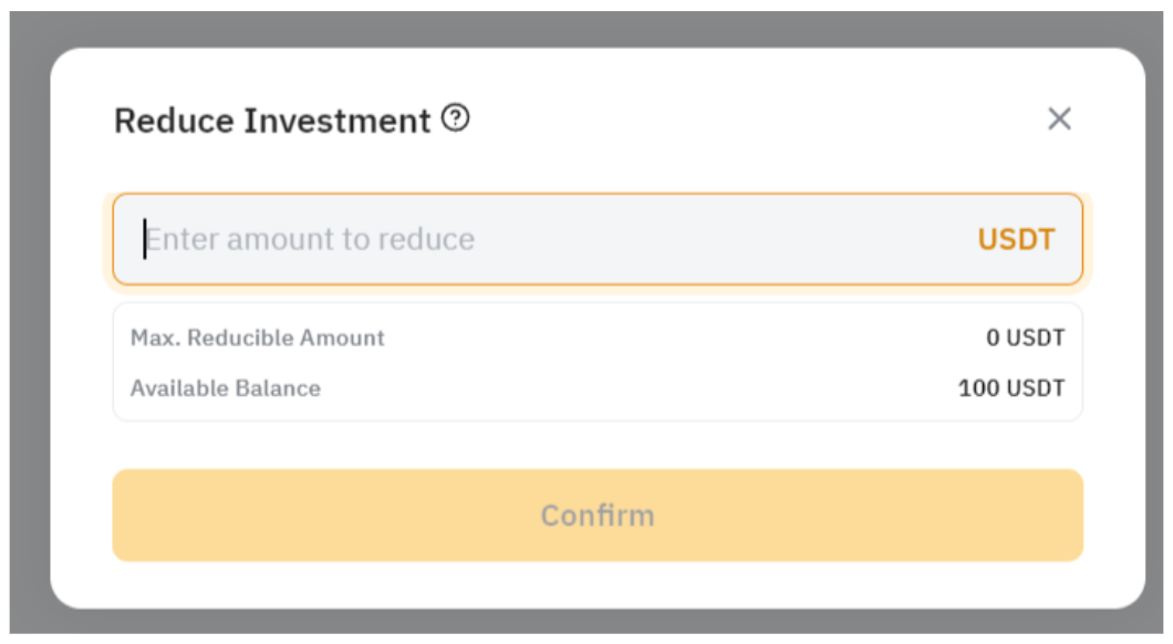 — 最大可減金額會顯示在「減少投資額」窗口中。