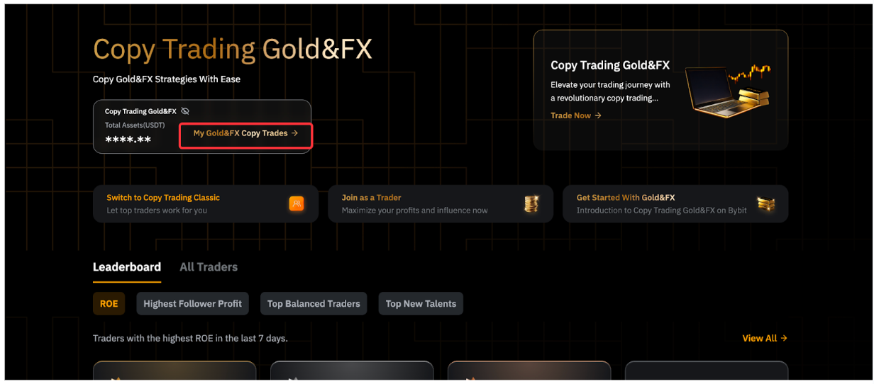 第 1 步:點擊交易達人展示頁面左上角的我的TradFi跟單,進入跟單用戶中心。