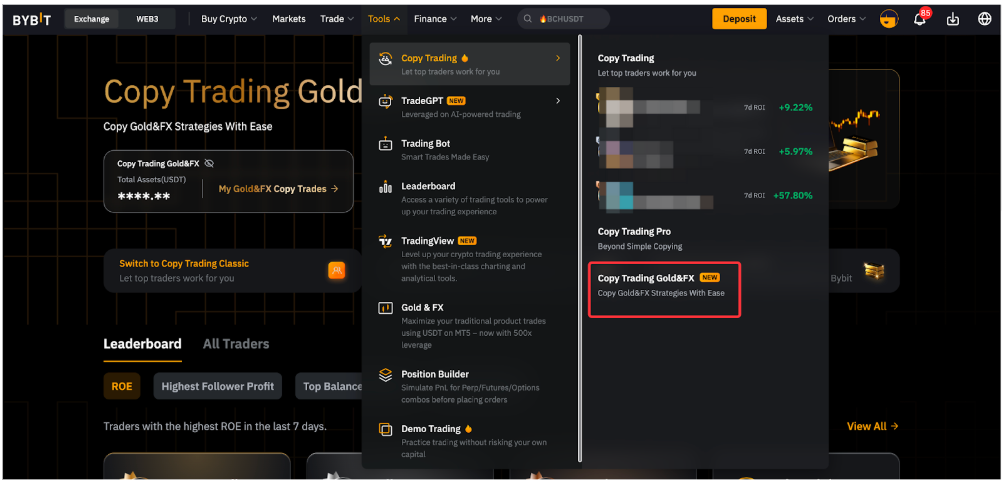 第 1 步:在導航欄中點擊工具 → 跟單交易,進入TradFi跟單頁面。