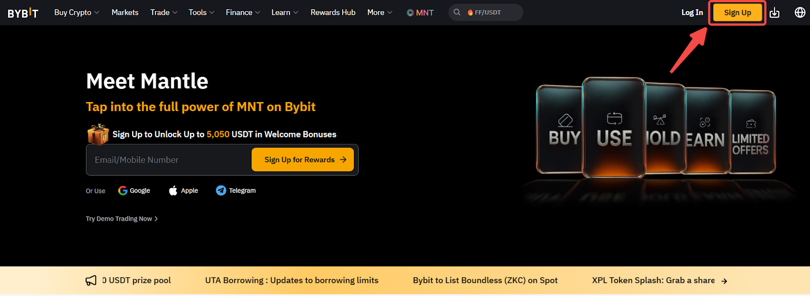 步驟 1:在 Bybit 網站首頁上,按一下右上角的註冊以存取註冊頁面。