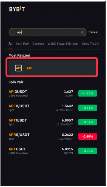 若要檢索 API 文件,請在搜尋欄中輸入“API”,然後點選“API 文件”。
